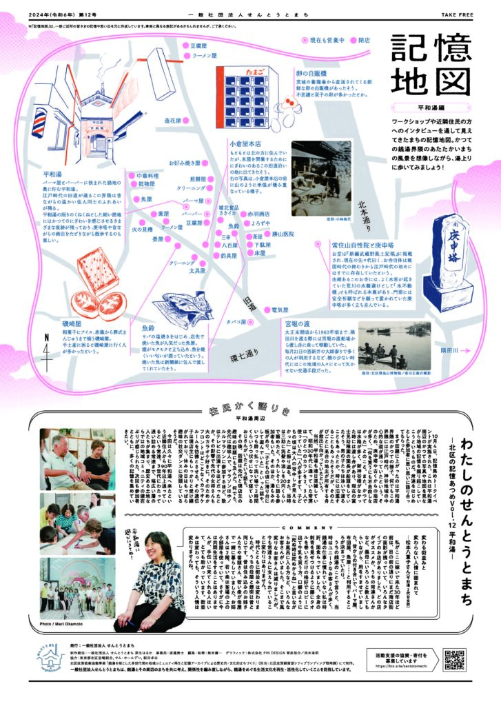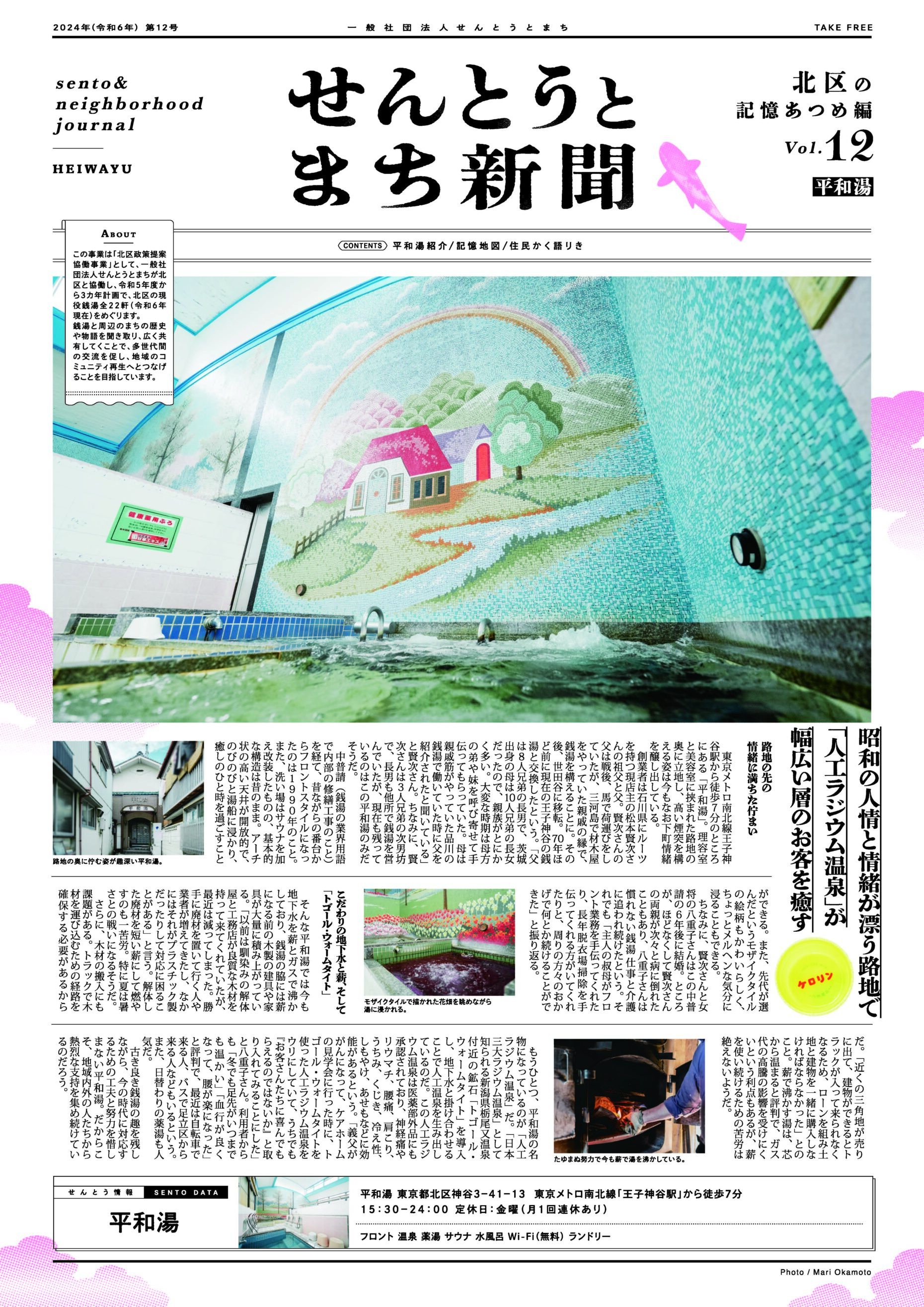 vol.12は平和湯。遠くからでも通いたくなる地域のくつろぎ拠点としての様子や、まちの記憶地図を通して見えてくる風景を想像しながら、ぜひ実際に足を運んでみてください。