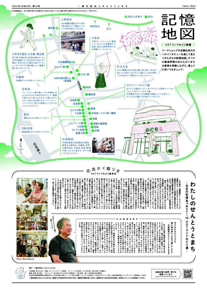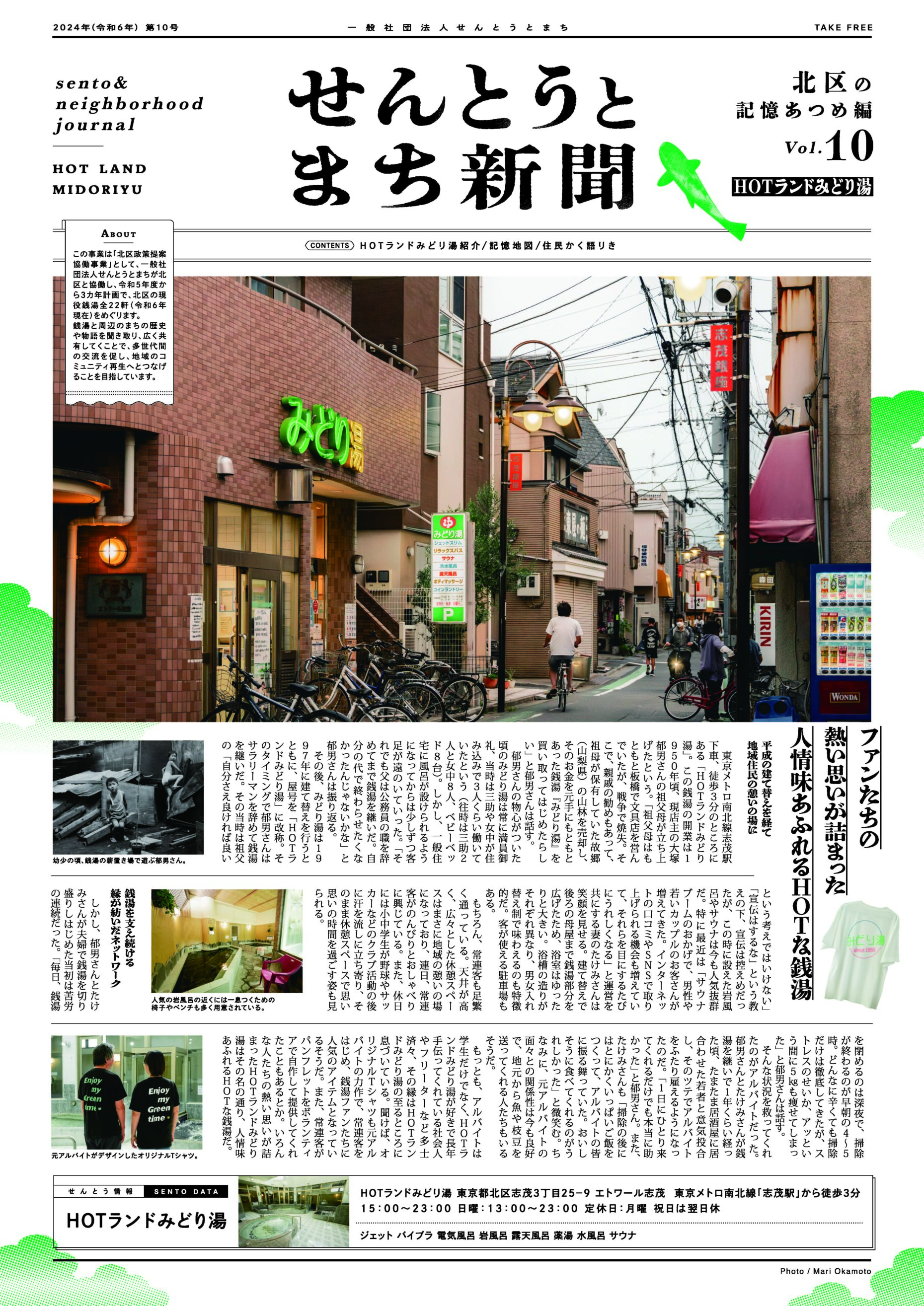 vol.10はHOTランドみどり湯。遠くからでも通いたくなる地域のくつろぎ拠点としての様子や、まちの記憶地図を通して見えてくる風景を想像しながら、ぜひ実際に足を運んでみてください。